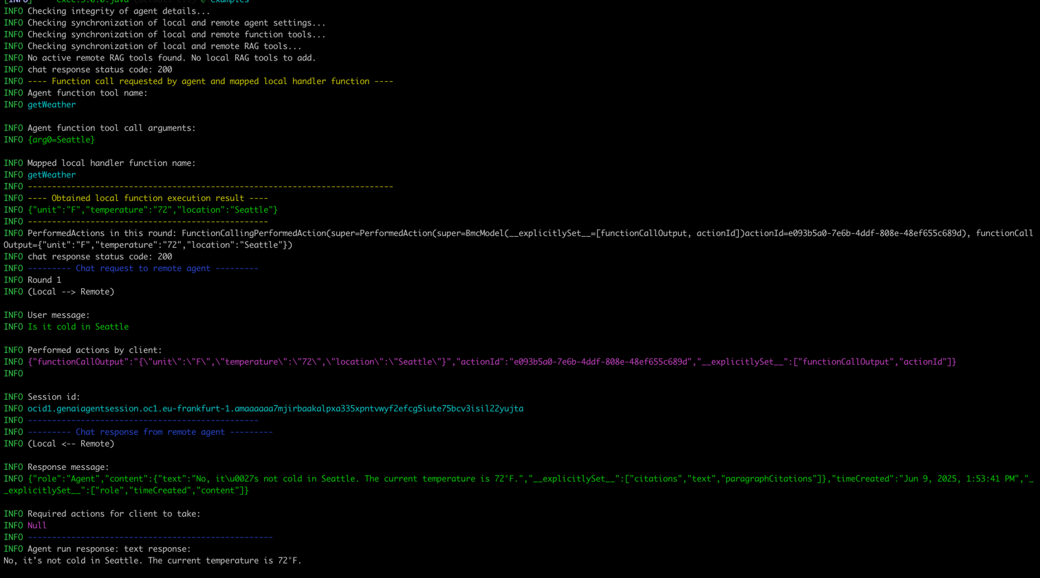 Now you have a simple weather agent using ADK running locally, with outbound connection to your agent endpoint on OCI.